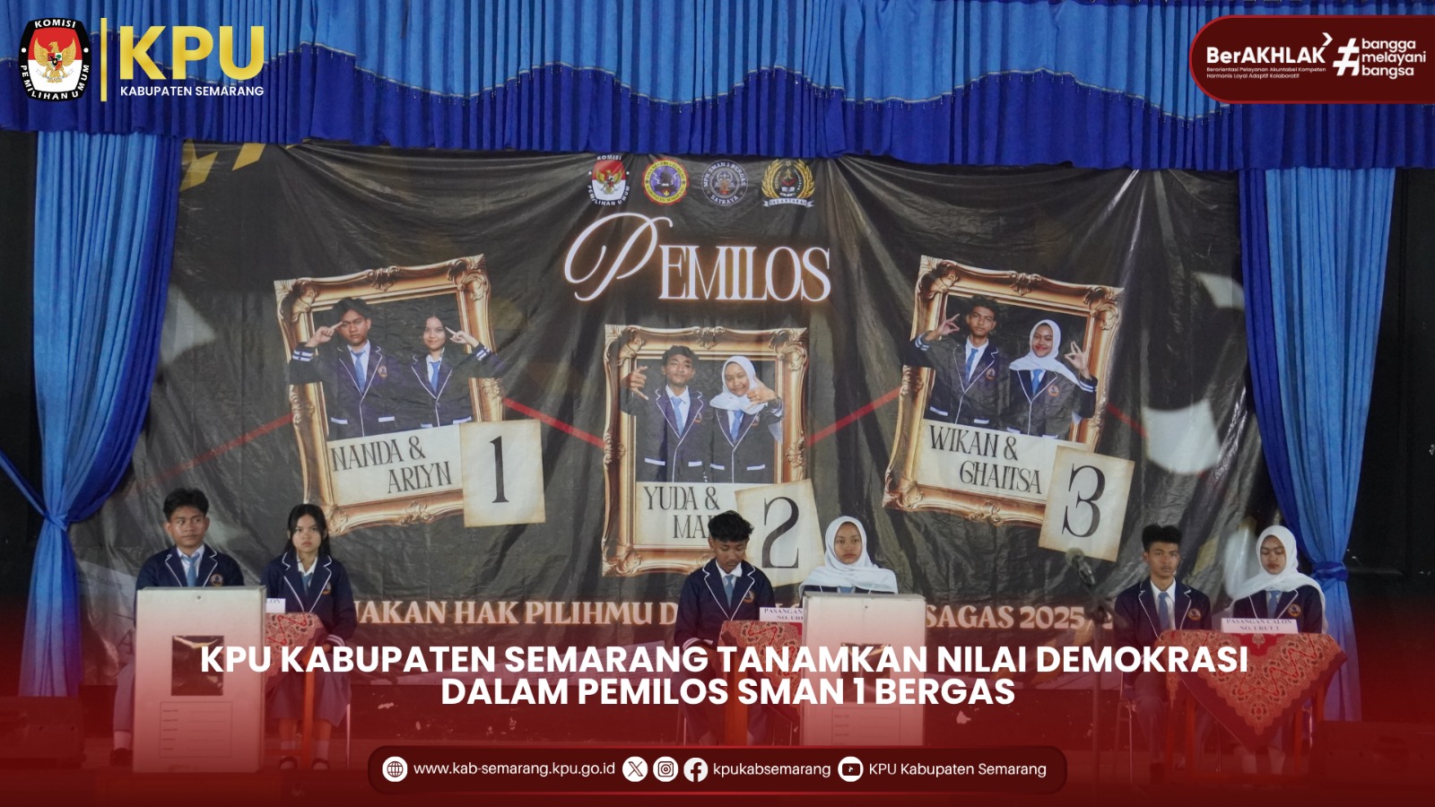 Bergas - KPU Kabupaten Semarang terus berkomitmen menanamkan nilai-nilai demokrasi kepada generasi muda. Hal ini diwujudkan melalui kegiatan Pemilos SMAN 1 Bergas yang dilaksanakan pada Senin (22/09/2025).
