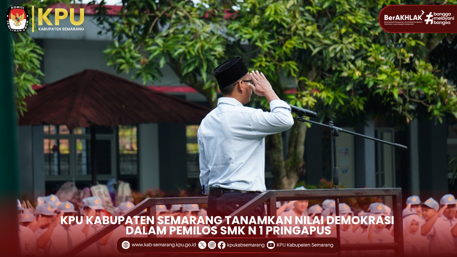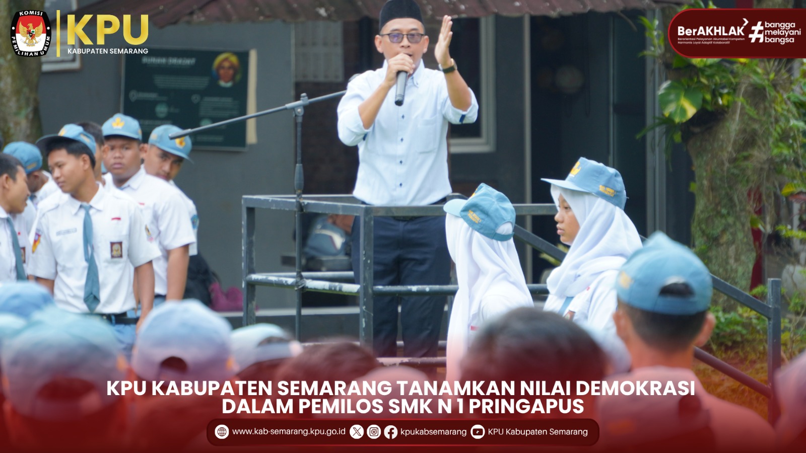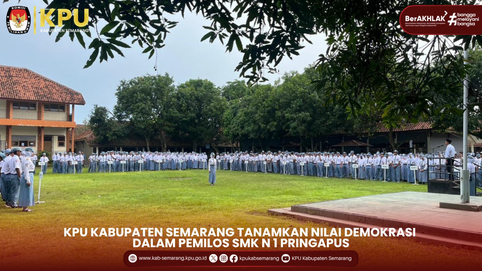 Pringapus - KPU Kabupaten Semarang hadir dalam kegiatan PEMILOS di SMK N 1 Pringapus sebagai wujud komitmen dalam menanamkan nilai-nilai demokrasi sejak di bangku sekolah, pada Senin (17/11/2025).