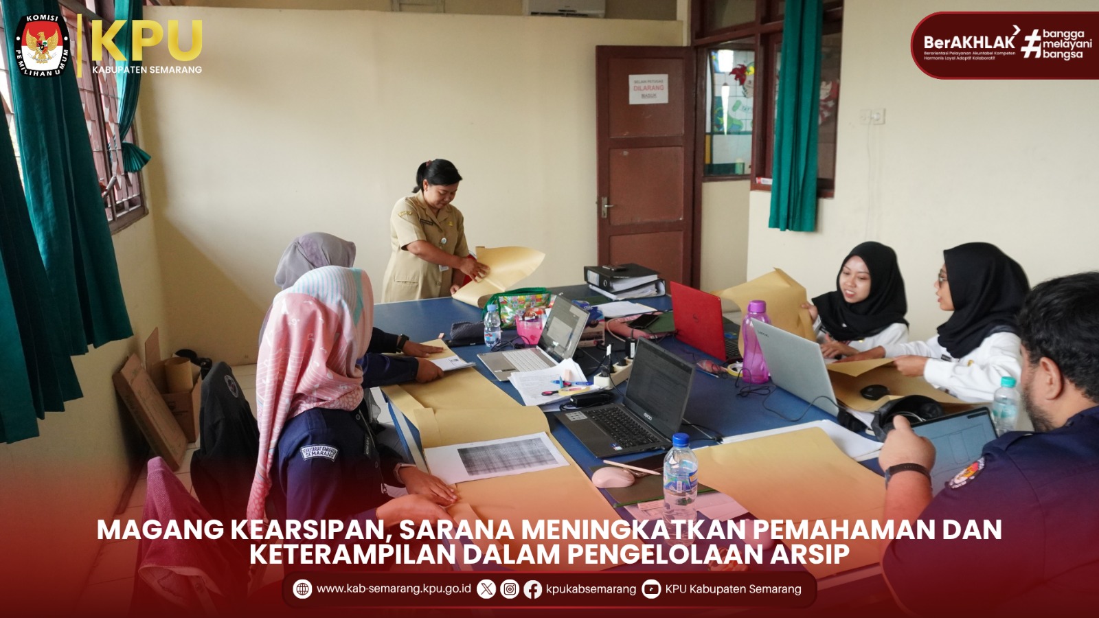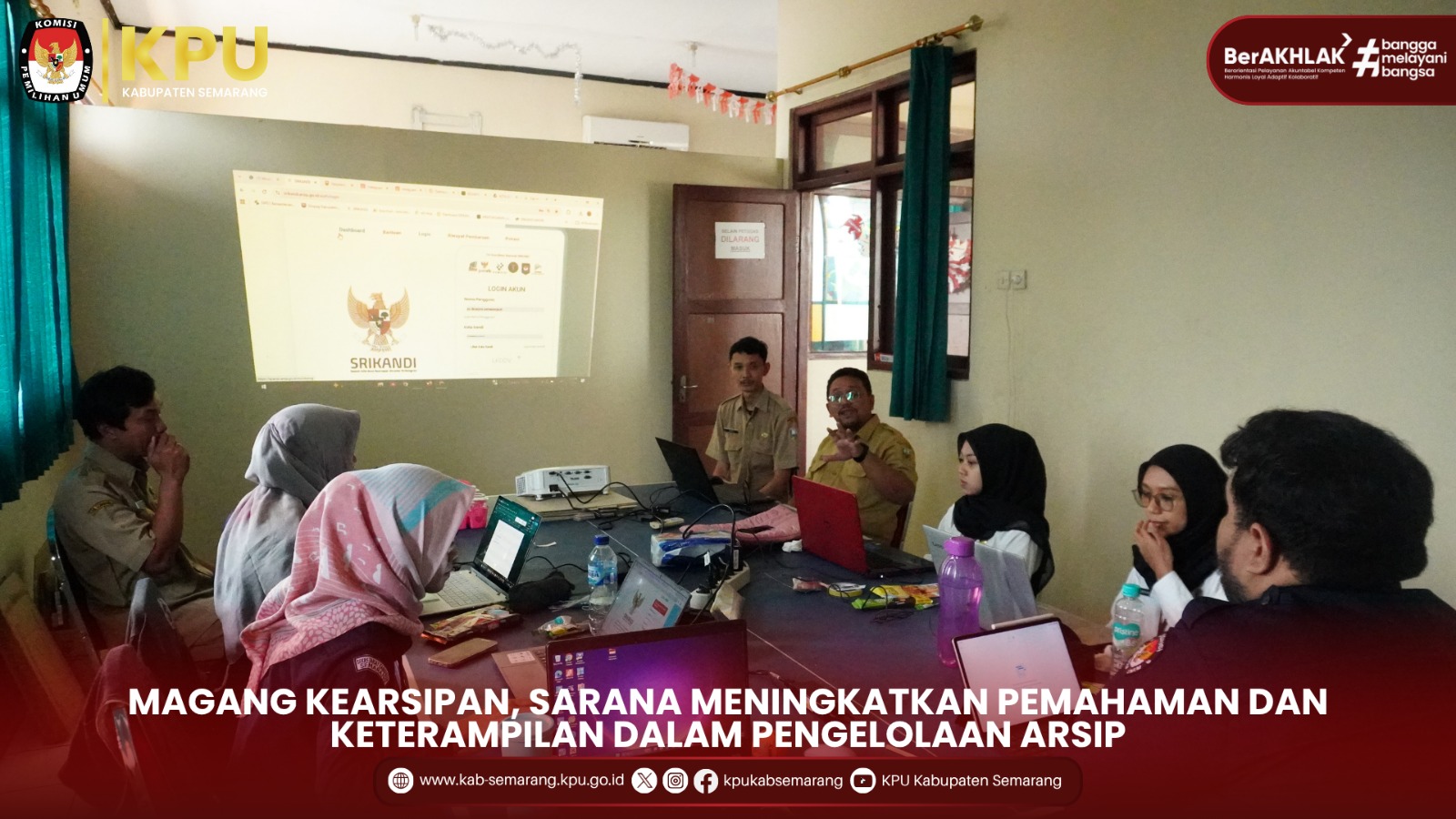 Dalam rangka meningkatkan pemahaman dan keterampilan para pegawai di lingkungan KPU Kabupaten Semarang di bidang pengelolaan kearsipan, KPU Kabupaten Semarang mengikuti Magang Kearsipan di Depo Arsip Kabupaten Semarang. Kegiatan ini dibagi menjadi dua batch, yakni Batch Pertama yang berlangsung pada tanggal 10 sampai dengan 12 November 2025 dan Batch Kedua yang berlangsung pada tanggal 17 sampai dengan 19 November 2025.