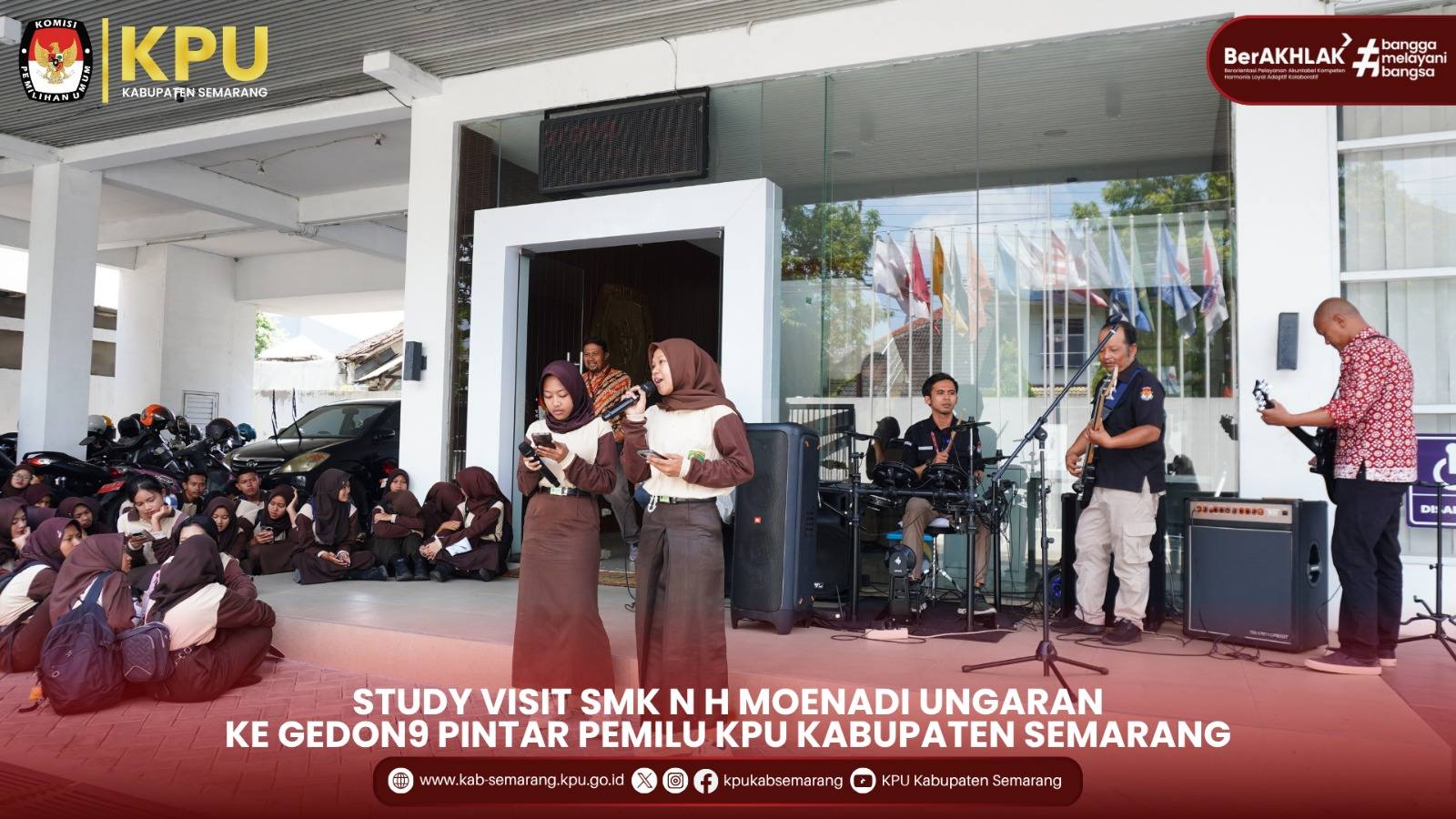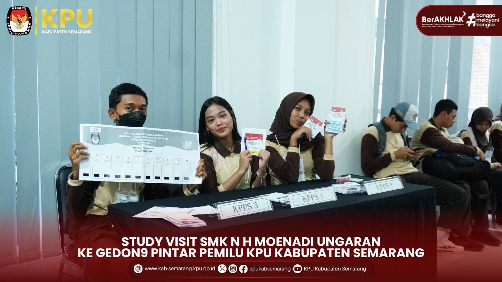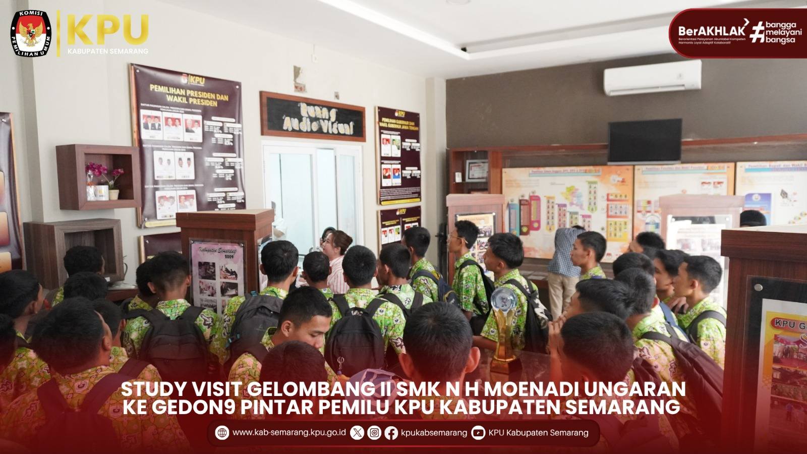 Ungaran - Sebanyak 194 siswa/i SMK Negeri H. Moenadi Ungaran melaksanakan study visit edukatif ke Gedong Pintar Pemilu yang berada di Kantor KPU Kabupaten Semarang, pada Rabu dan Kamis (8 dan 9/10/2025). Kegiatan ini bertujuan untuk menanamkan nilai-nilai demokrasi serta memperluas wawasan pelajar tentang proses kepemiluan di Indonesia. Para siswa mengikuti serangkaian kegiatan pendidikan pemilih yang dikemas dalam bentuk moving class agar lebih dinamis dan menarik.