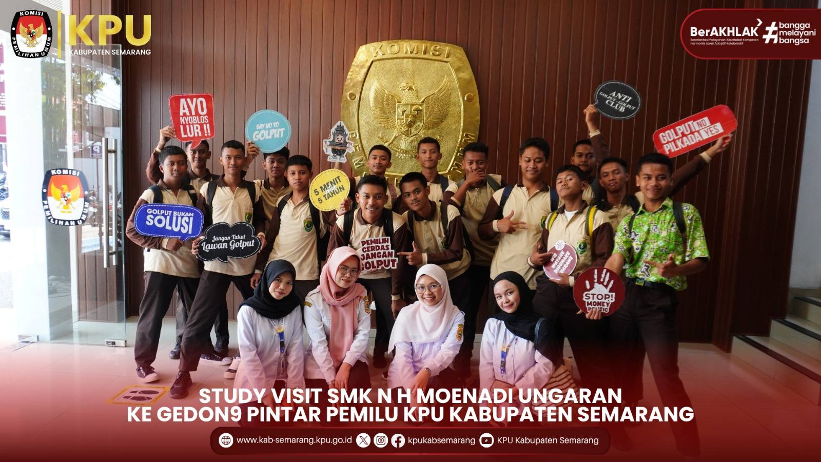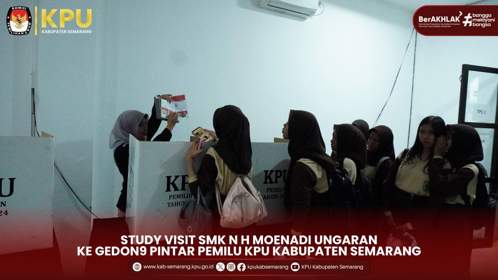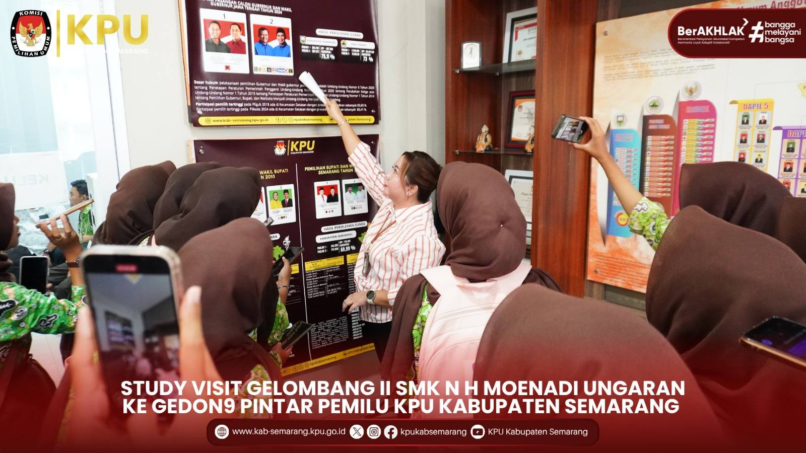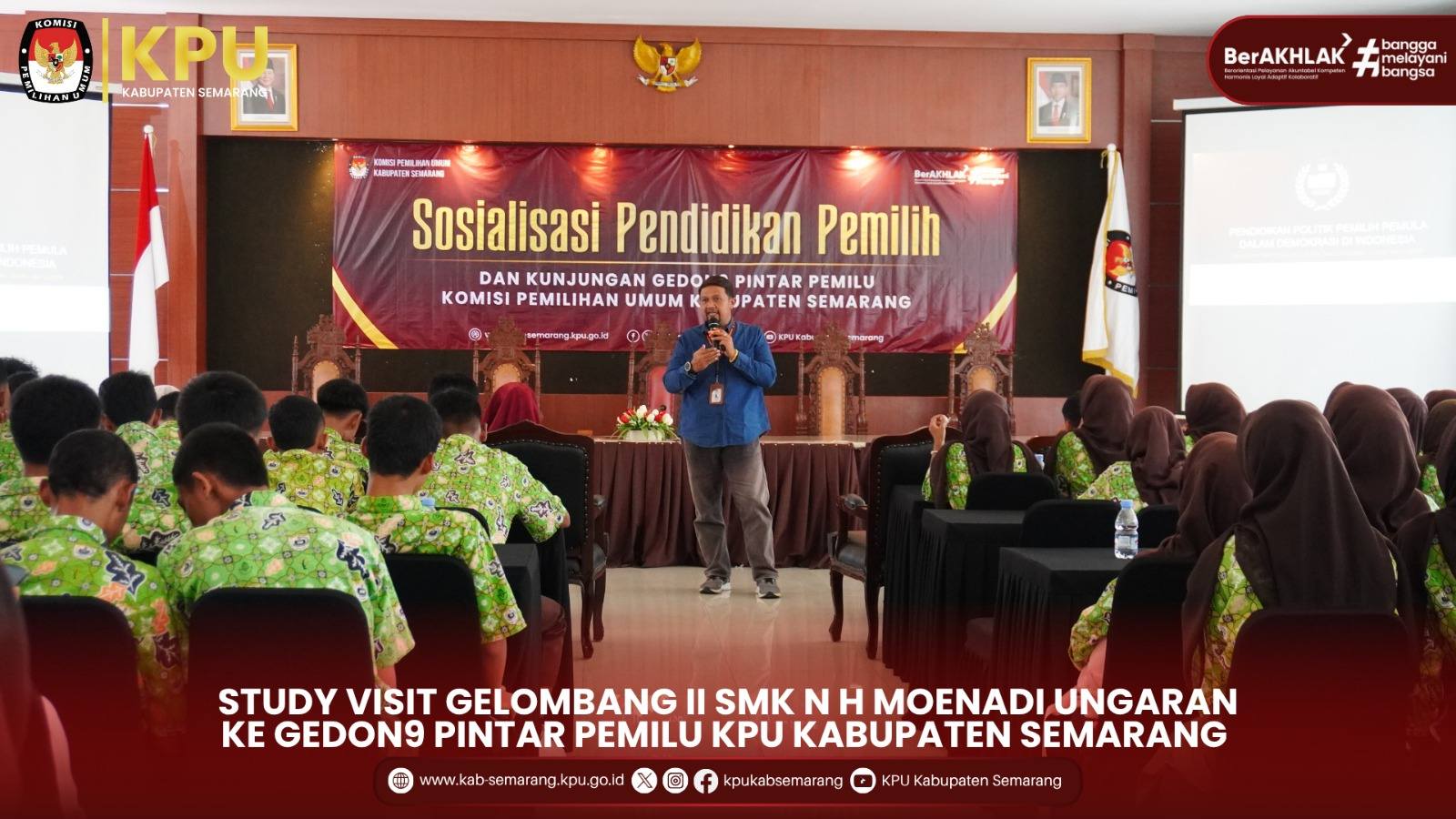 Ungaran - Sebanyak 194 siswa/i SMK Negeri H. Moenadi Ungaran melaksanakan study visit edukatif ke Gedong Pintar Pemilu yang berada di Kantor KPU Kabupaten Semarang, pada Rabu dan Kamis (8 dan 9/10/2025). Kegiatan ini bertujuan untuk menanamkan nilai-nilai demokrasi serta memperluas wawasan pelajar tentang proses kepemiluan di Indonesia. Para siswa mengikuti serangkaian kegiatan pendidikan pemilih yang dikemas dalam bentuk moving class agar lebih dinamis dan menarik.