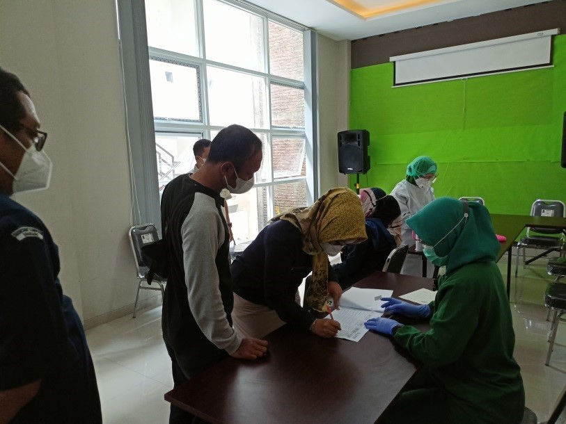 (Ungaran, 14/12) Untuk mencegah penularan Covid-19, KPU Kabupaten Semarang melakukan Rapid Test Covid Antigen untuk seluruh pegawai baik Komisioner serta Sekretariat KPU Kabupaten Semarang (termasuk satpam, tenaga pendukung dan tenaga kontrak) yang dilaksanakan di Ruang Audio Visual Lt.1 Kantor KPU Kabupaten Semarang.