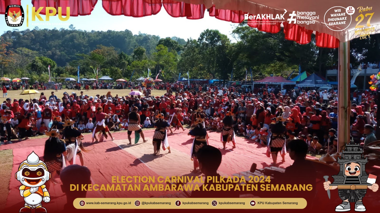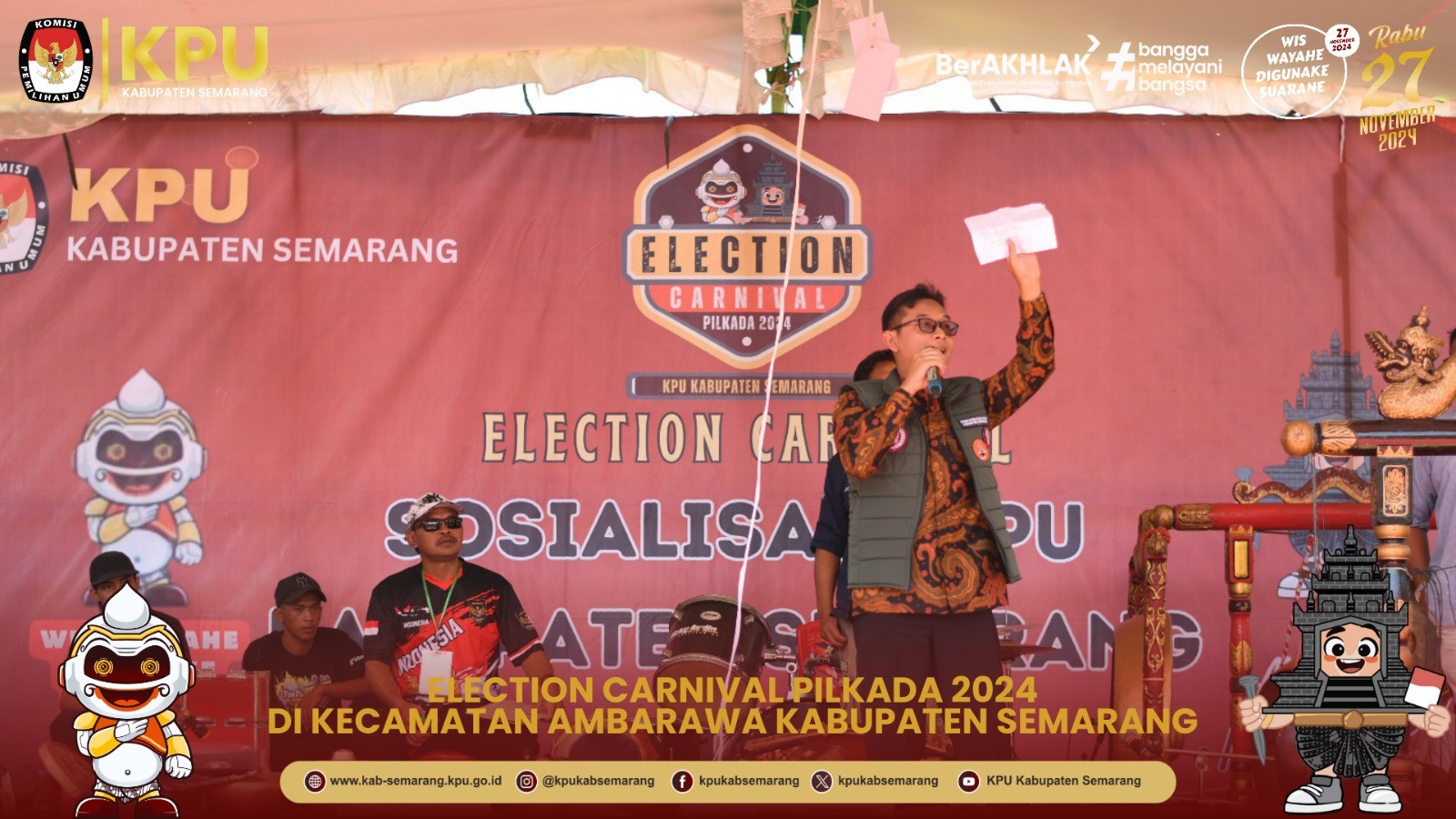 KPU Kabupaten Semarang melaksanakan Program Sosialisasi Election Carnival (E-Car) Pilkada 2024 Kedua Belas di Lapangan Segenyur Desa Pasekan, Kecamatan Ambarawa (17/8/2024).