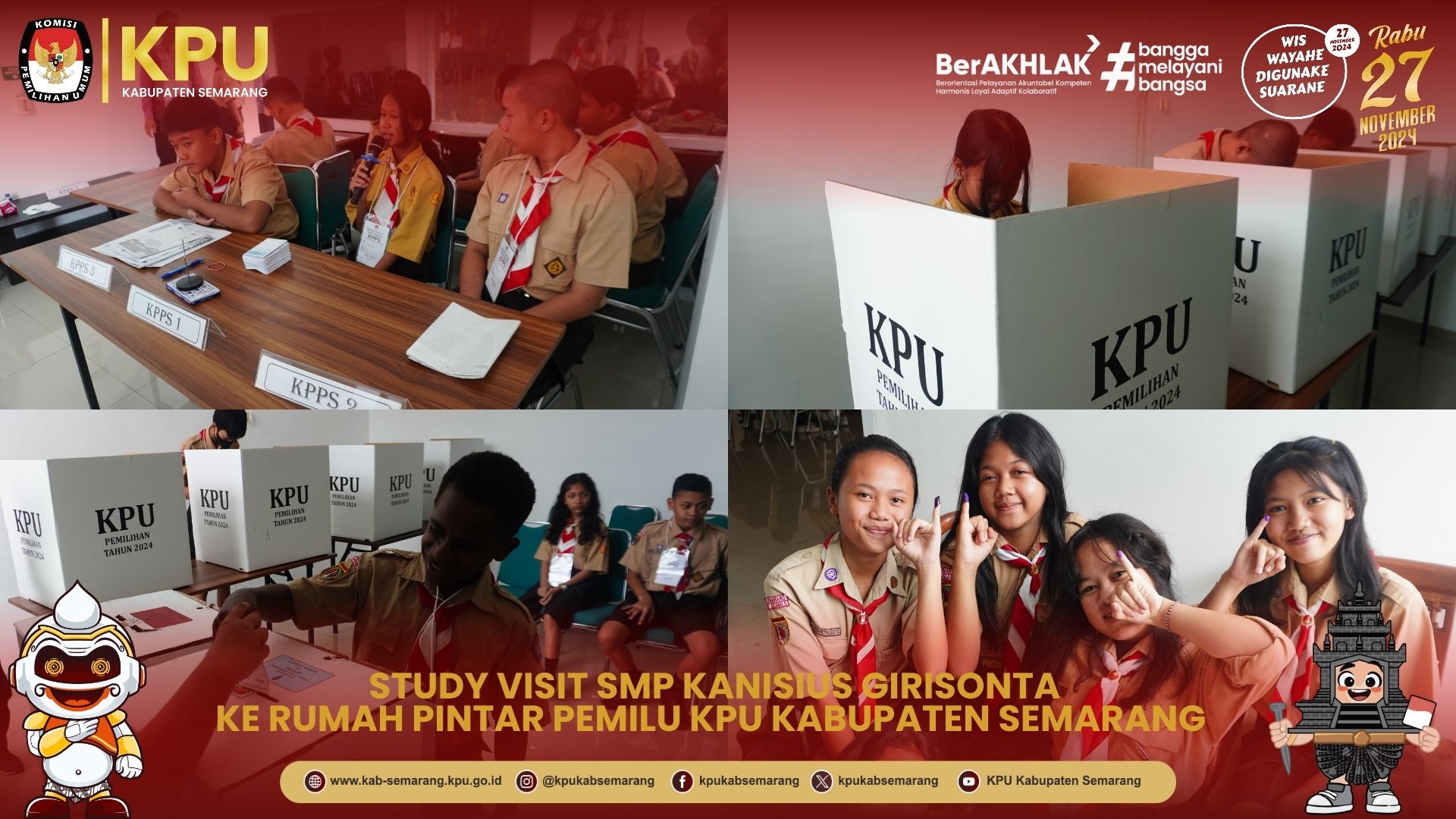 GEDONG PINTAR PEMILU KPU KABUPATEN SEMARANG MENERIMA KUNJUNGAN DARI SMP KANISIUS GIRISONTA KECAMATAN BERGAS KABUPATEN SEMARANG