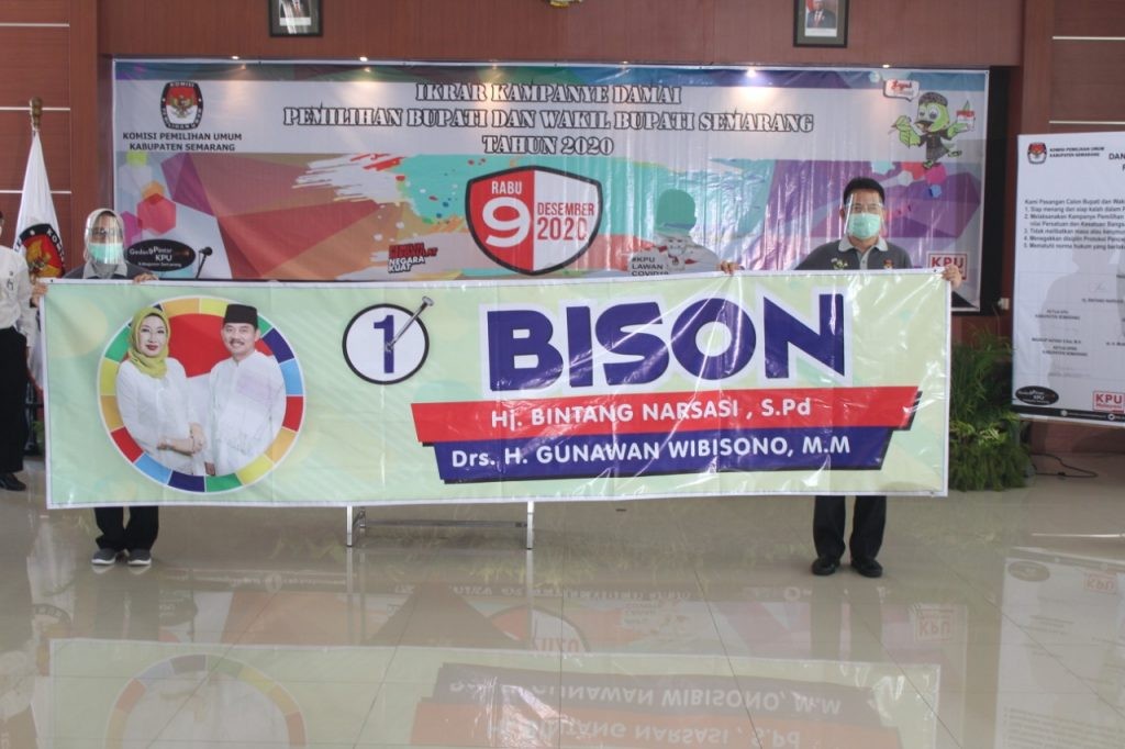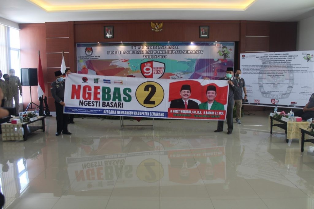 Penyerahan spanduk sebagai simbolis dimulainya tahapan Kampanye pada Pemilihan Bupati dan Wakil Bupati Semarang Tahun 2020