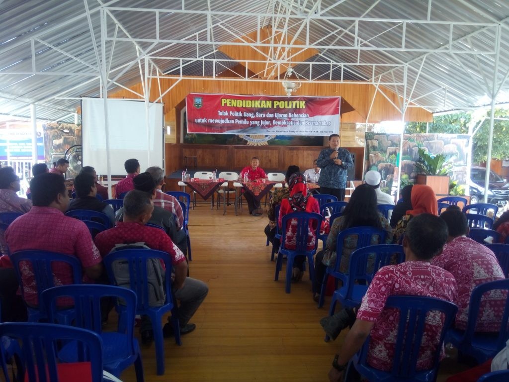 Bergas (30/1), Kantor Kesbangpol Kabupaten Semarang menggelar kegiatan pendidikan politik bertajuk “Tolak Politik Uang, SARA dan Ujaran Kebencian untuk Mewujudkan Pemilu yang Jujur, Demokratis dan Bermartabat” di Wisata Edukasi Bina Lingkungan Congol, Kecamatan Bergas, Kabupaten Semarang.