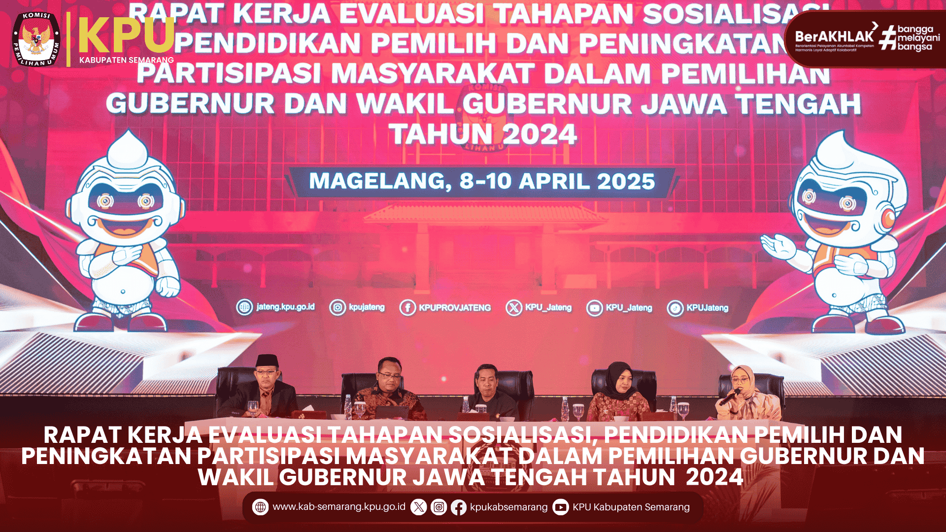 KPU KABUPATEN SEMARANG MENGIKUTI KEGIATAN RAPAT KERJA EVALUASI TAHAPAN SOSIALISASI, PENDIDIKAN PEMILIH, DAN PENINGKATAN PARTISIPASI MASYARAKAT DALAM PEMILIHAN GUBERNUR DAN WAKIL GUBERNUR JAWA