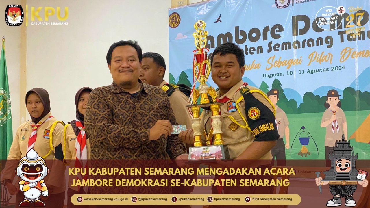 Kegiatan Jambore Demokrasi Pilkada 2024 KPU Kabupaten Semarang ini bertema "Pramuka Sebagai Pilar Pendidikan Demokrasi", dilaksanakan di Undaris pada hari Sabtu dan Minggu, tanggal 10 - 11 Agustus 2024.