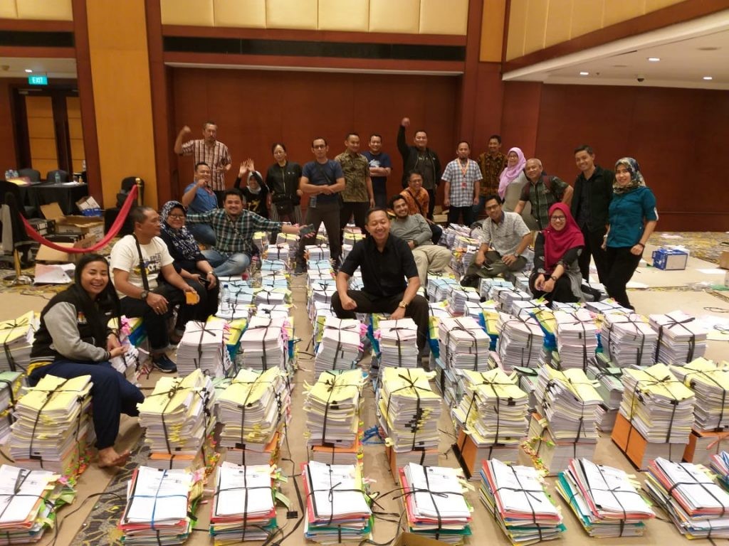 Jakarta (11/6), KPU Kabupaten Semarang menyampaikan 8 dus Alat Bukti Perselisihan Hasil Pemilu Presiden dan Wakil Presiden Tahun 2019 kepada KPU RI melalui KPU Provinsi Jawa Tengah di Ruang Flores Hotel Borobudur.