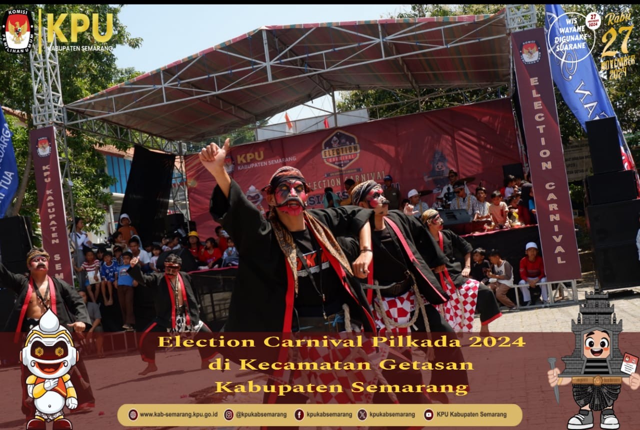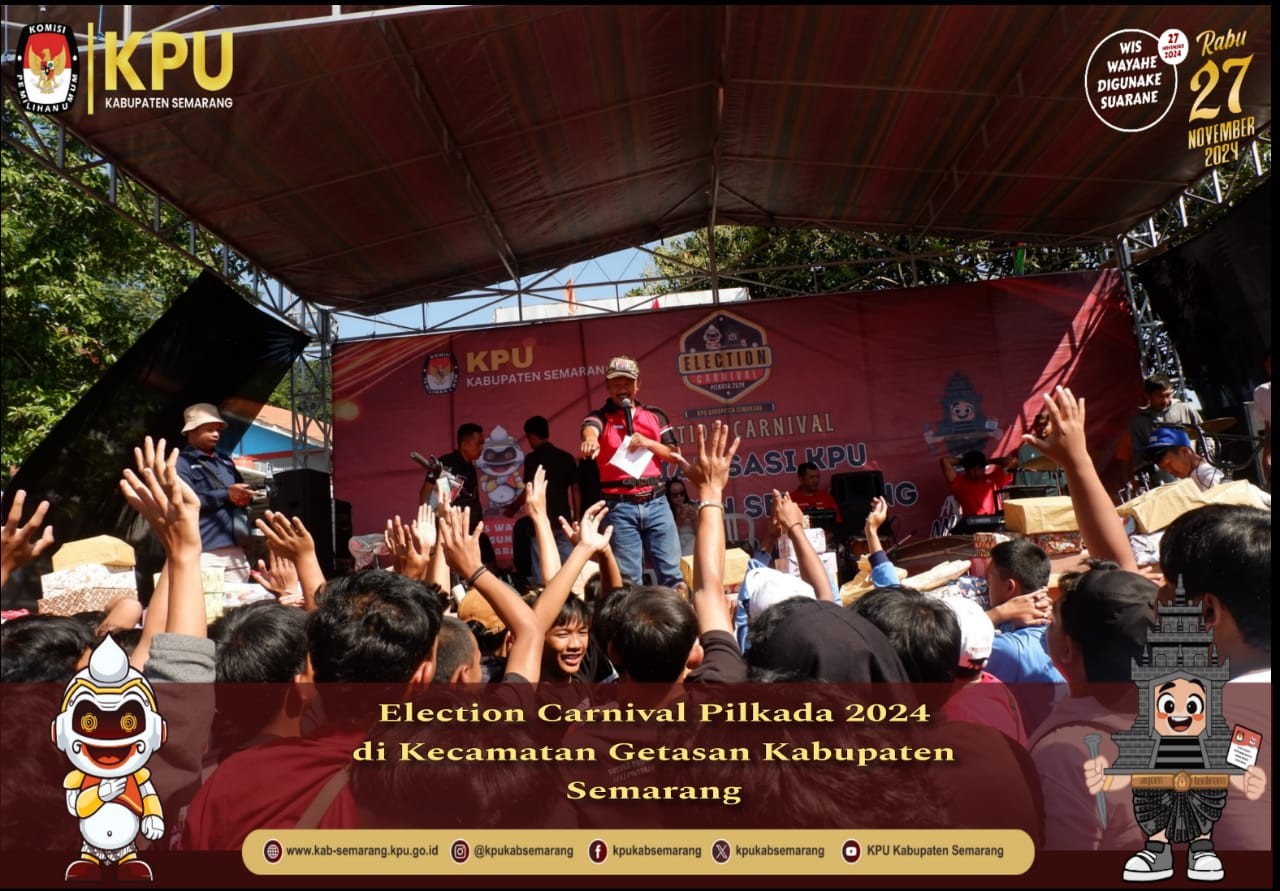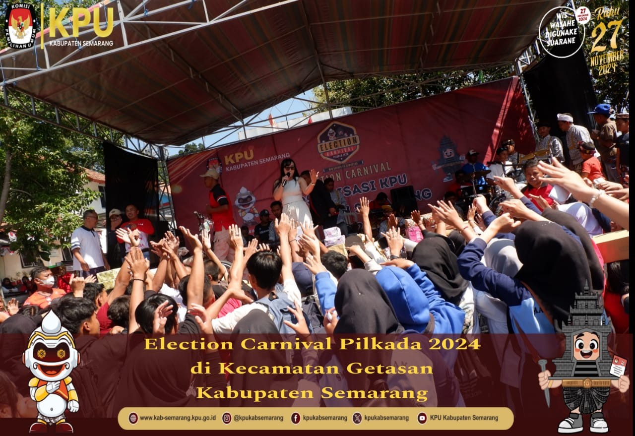 Getasan - KPU Kabupaten Semarang melaksanakan Program Sosialisasi Election Carnival (E-Car) Pilkada 2024 Kesebelas di halaman Kecamatan Getasan (15/8/2024).
