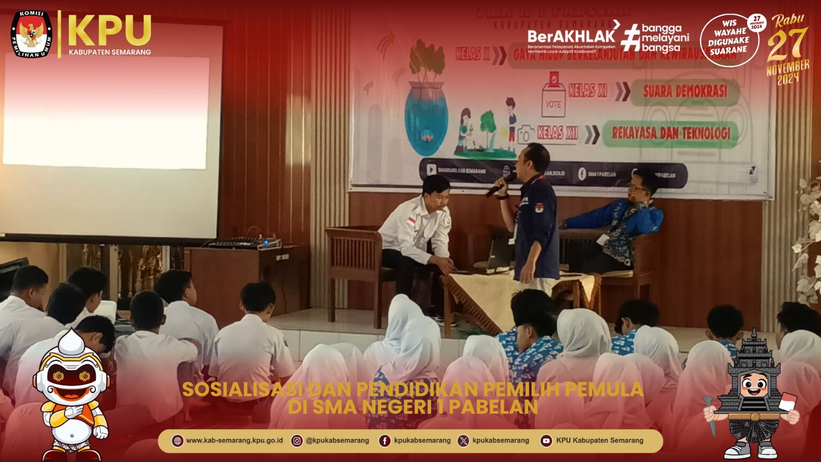 Kegiatan sosialisasi ini merupakan agenda SMA N 1 Pabelan yang bekerjasama dengan KPU Kabupaten Semarang dalam melaksanakan pendidikan pemilih yang bertujuan untuk meningkatkan kualitas demokrasi dan partisipasi Pemilih dalam Pilkada 2024.