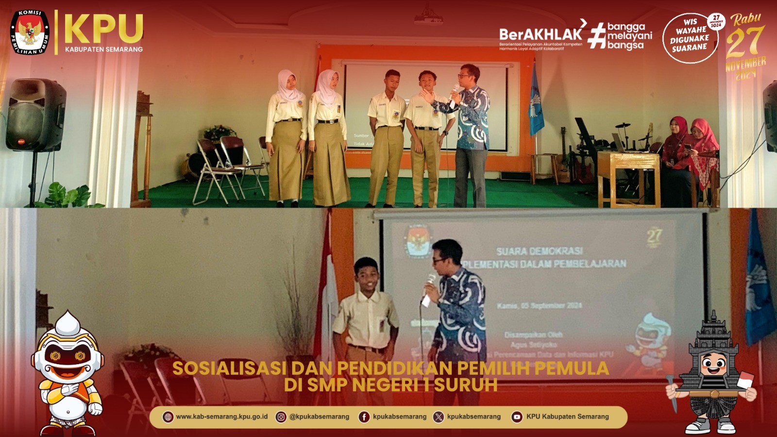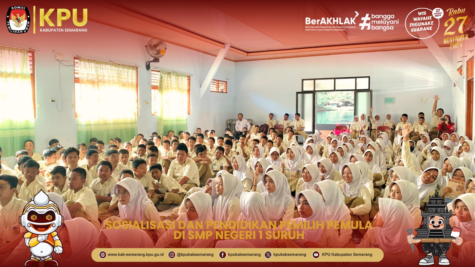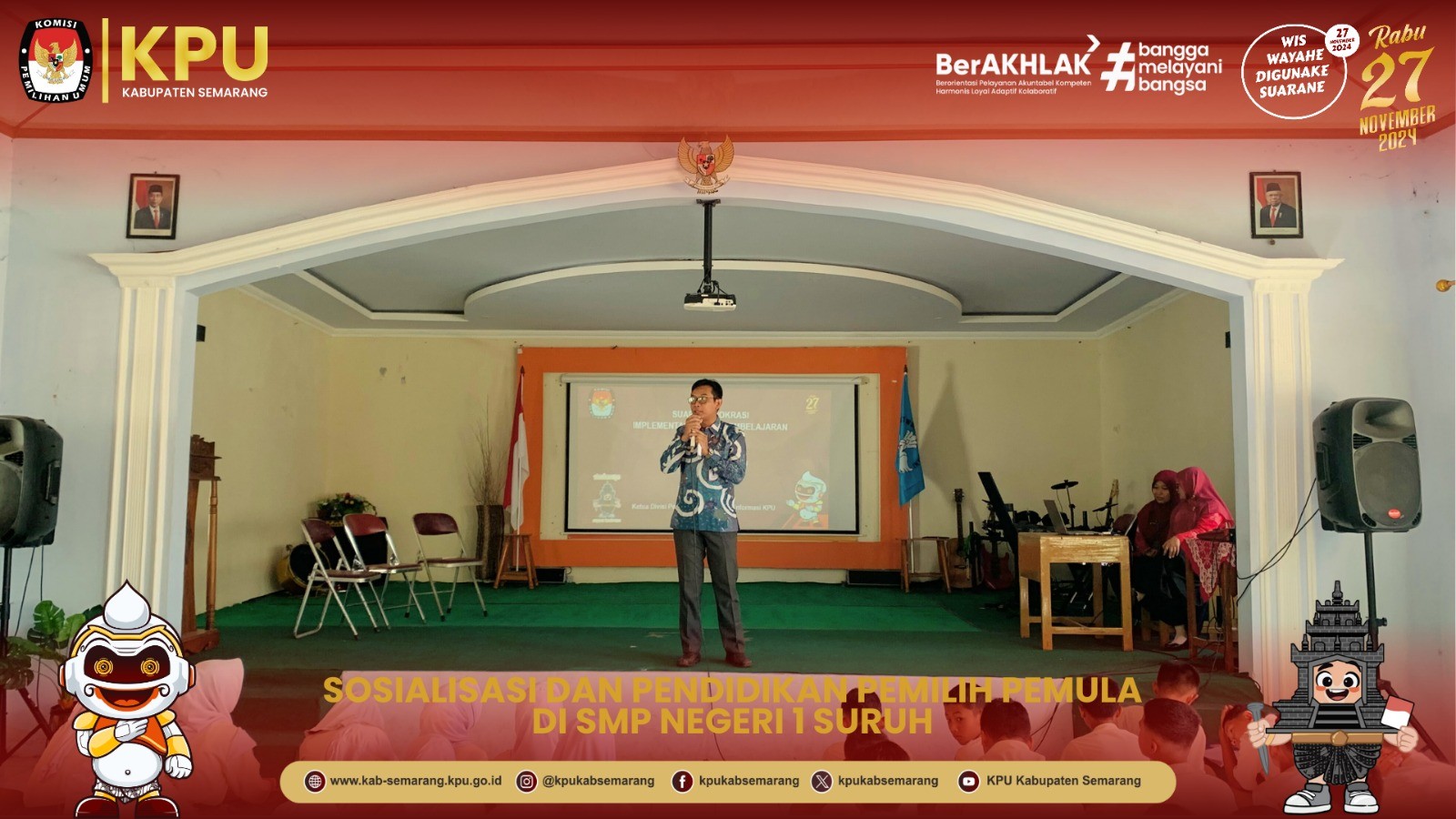 KPU Kabupaten Semarang melaksanakan sosialisasi pada pembelajaran project P5 di SMP Negeri 1 Suruh (5/9/2024).