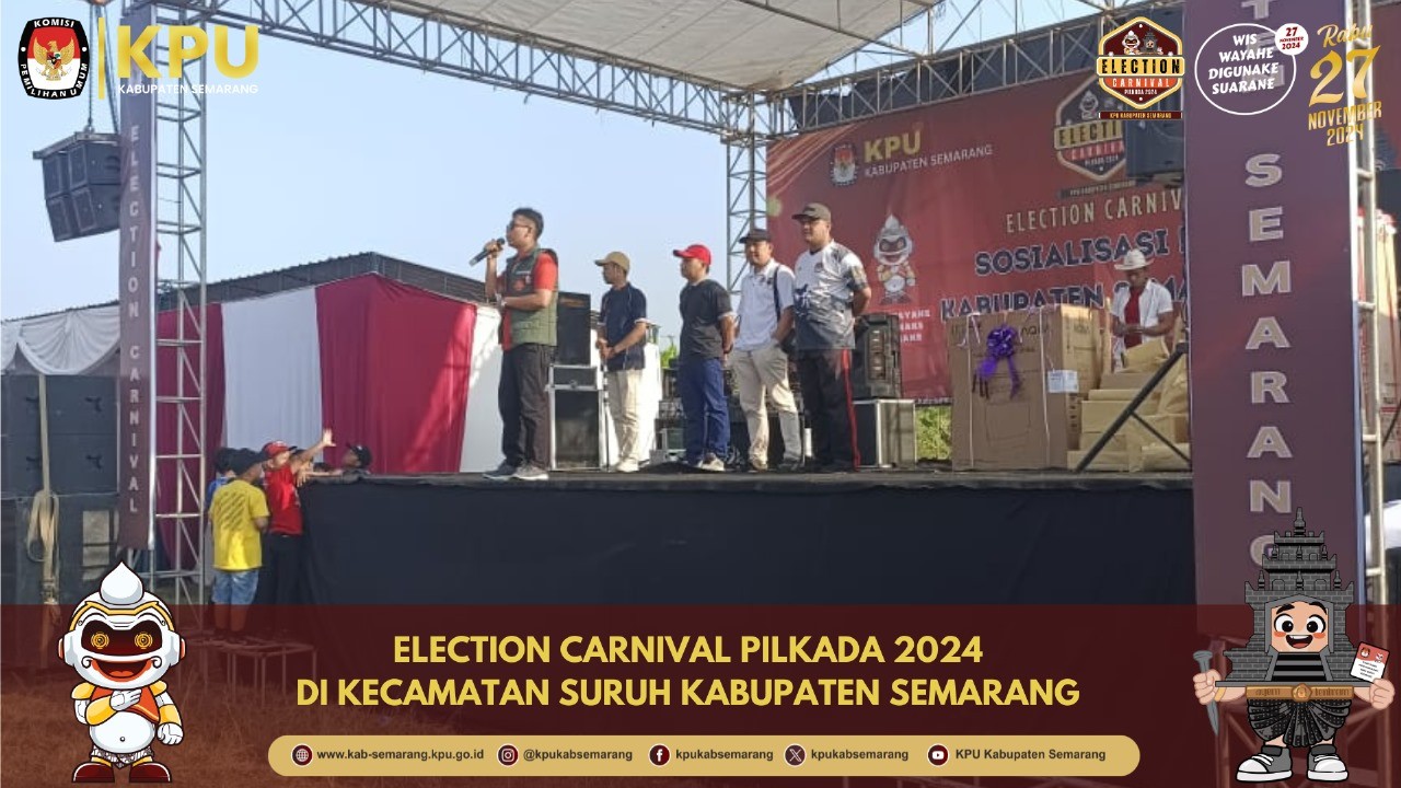 KPU kabupaten Semarang menggelar Election Carnival kedelapan di Kecamatan Suruh dalam rangkaian kegiatan senam Sehat, Jalan Santai dan hiburan band lokal “bareng selawase" di Lapangan Kecamatan Suruh (11/8/2024).