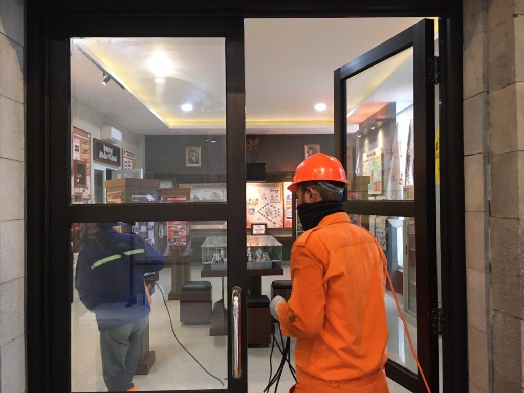 Ungaran (20/3), dalam rangka mencegah penyebaran virus korona (covid-19) di lingkungan kerja, KPU Kabupaten Semarang melakukan tindakan preventif dengan melakukan penyemprotan disinfektan (spraying disinvectant) terhadap seluruh ruangan di Kantor KPU Kabupaten Semarang.