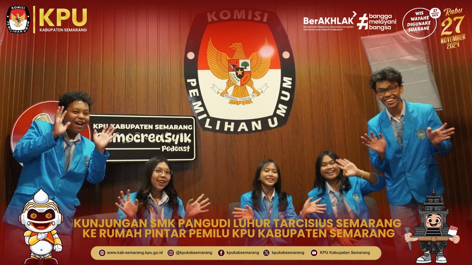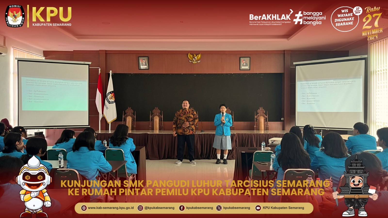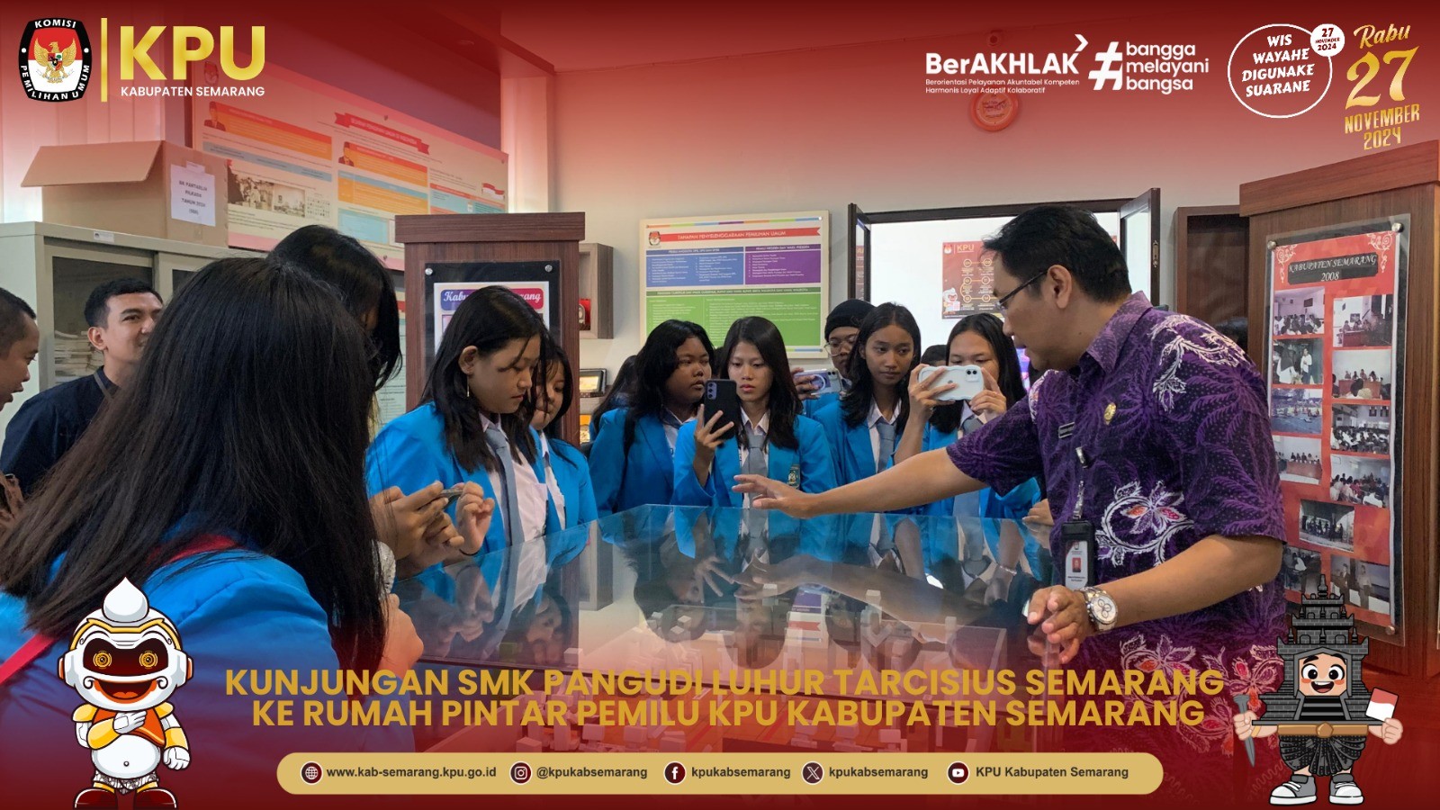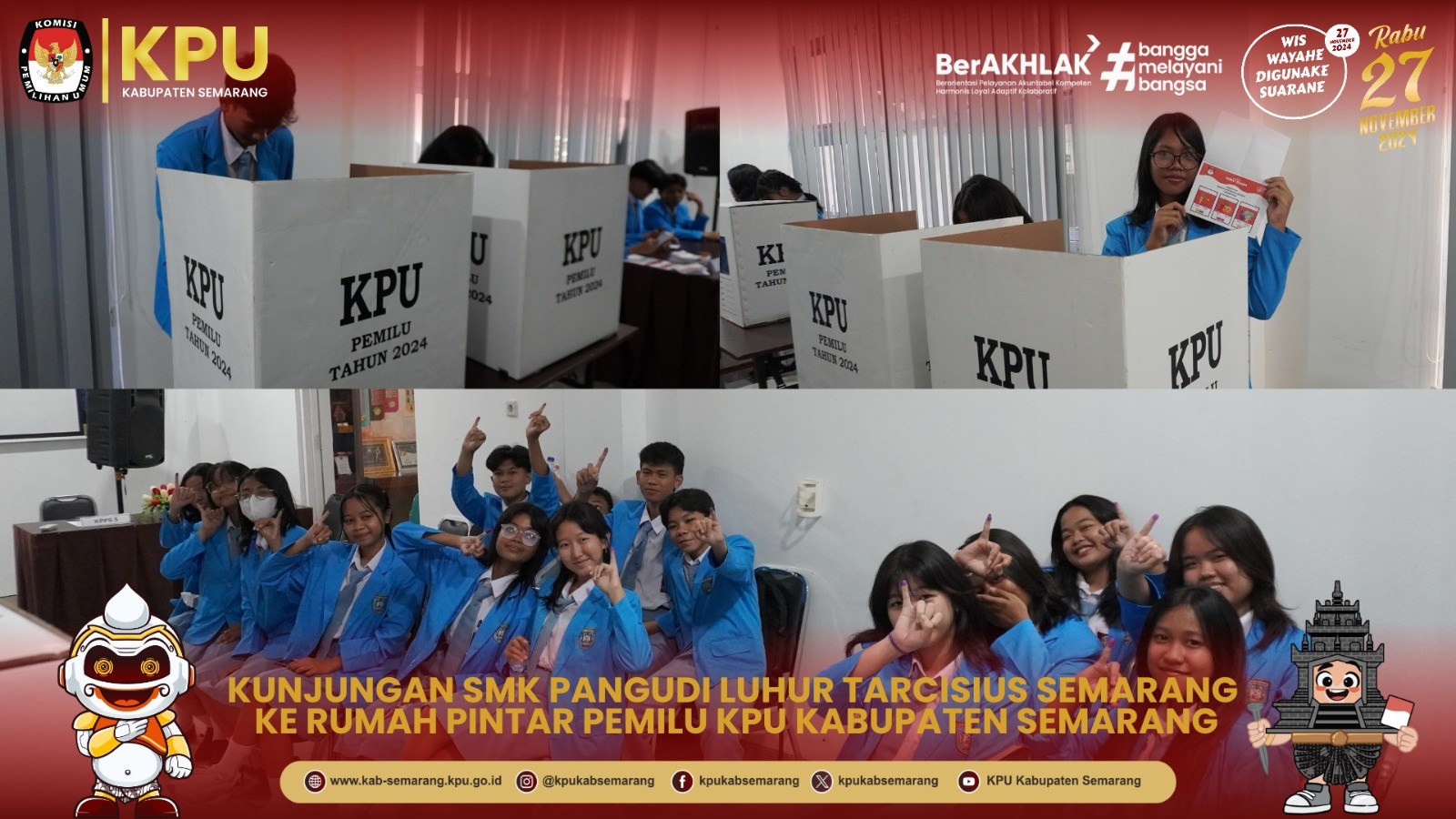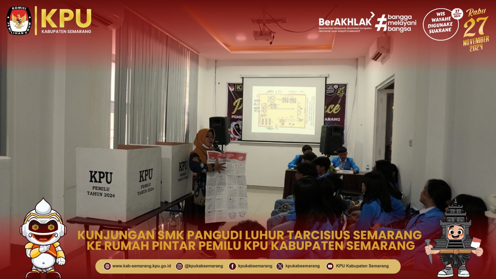 TERIMA KUNJUNGAN SMK PANGUDI LUHUR TARCISIUS SEMARANG, KPU KABUPATEN SEMARANG LAKUKAN SIMULASI PEMUNGUTAN SUARA