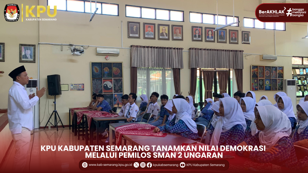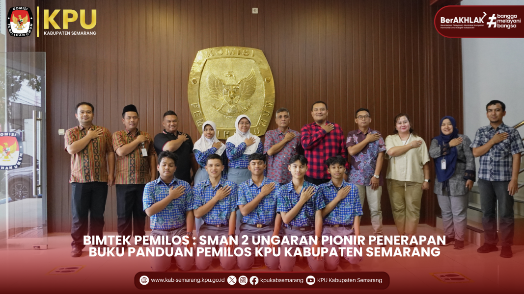 KPU Kabupaten Semarang terus berkomitmen menanamkan nilai-nilai demokrasi sejak dini melalui Bimbingan Teknis (Bimtek) Pemilos yang diikuti Ketua MPK, Ketua OSIS, anggota Komisi Pemilihan Osis (KPO), serta guru pendamping SMAN 2 Ungaran pada hari Selasa, (16/09/2025). Dalam kegiatan ini, SMAN 2 Ungaran mendapat apresiasi karena menjadi satu-satunya sekolah yang telah menerapkan Buku Panduan Pemilos karya KPU Kabupaten Semarang secara utuh. Penerapan panduan tersebut membuat pelaksanaan Pemilos berjalan lebih terstruktur, transparan, dan sesuai dengan prinsip demokrasi yang langsung, umum, bebas, rahasia, jujur, dan adil. Tidak hanya itu, SMAN 2 Ungaran juga telah membentuk Komisi Pemilihan Osis (KPO) dan merekrut lima anggota yang memiliki fungsi dan tugas seperti lima anggota KPU yaitu Ketua KPO yang merangkap sebagai Ketua Divisi Keuangan dan Logistik, Ketua Divisi Parmas Sosdiklih, Ketua Divisi Hukum dan Pengawasan, Ketua Perencanaan Data dan Informasi dan Ketua Divisi Teknis Penyelenggaraan. KPO adalah organisasi Independen yang dibentuk Sekolah untuk melaksanakan penyelenggaraan Pemilos di SMA N 2 Ungaran. Dengan semangat tinggi, KPO aktif mempersiapkan seluruh tahapan Pemilos, mulai dari penyusunan jadwal, Pencalonan, Pendataan Pemilih, Kampanye, Debat, sosialisasi kepada siswa, hingga mengatur teknis pelaksanaan di hari pemungutan suara. Keaktifan KPO membuktikan bahwa siswa mampu mengelola proses demokrasi di sekolah secara mandiri namun tetap terarah. Setelah selesai mengikuti Bimtek, siswa juga dikenalkan dengan Gedon9 Pintar Pemilu guna belajar denah TPS dan melihat Kotak Suara dari tahun ke tahun. Melalui Bimtek ini, KPU Kabupaten Semarang berharap agar pengalaman demokrasi di sekolah dapat membekas dalam diri siswa. Dengan begitu, mereka akan terbiasa berpikir kritis, bersikap adil, dan bertanggung jawab sebagai generasi penerus bangsa. Dengan dukungan Buku Panduan Pemilos dan keaktifan KPO, SMAN 2 Ungaran bukan hanya sekadar melaksanakan pemilihan OSIS, tetapi juga melahirkan budaya demokrasi yang sehat di lingkungan sekolah