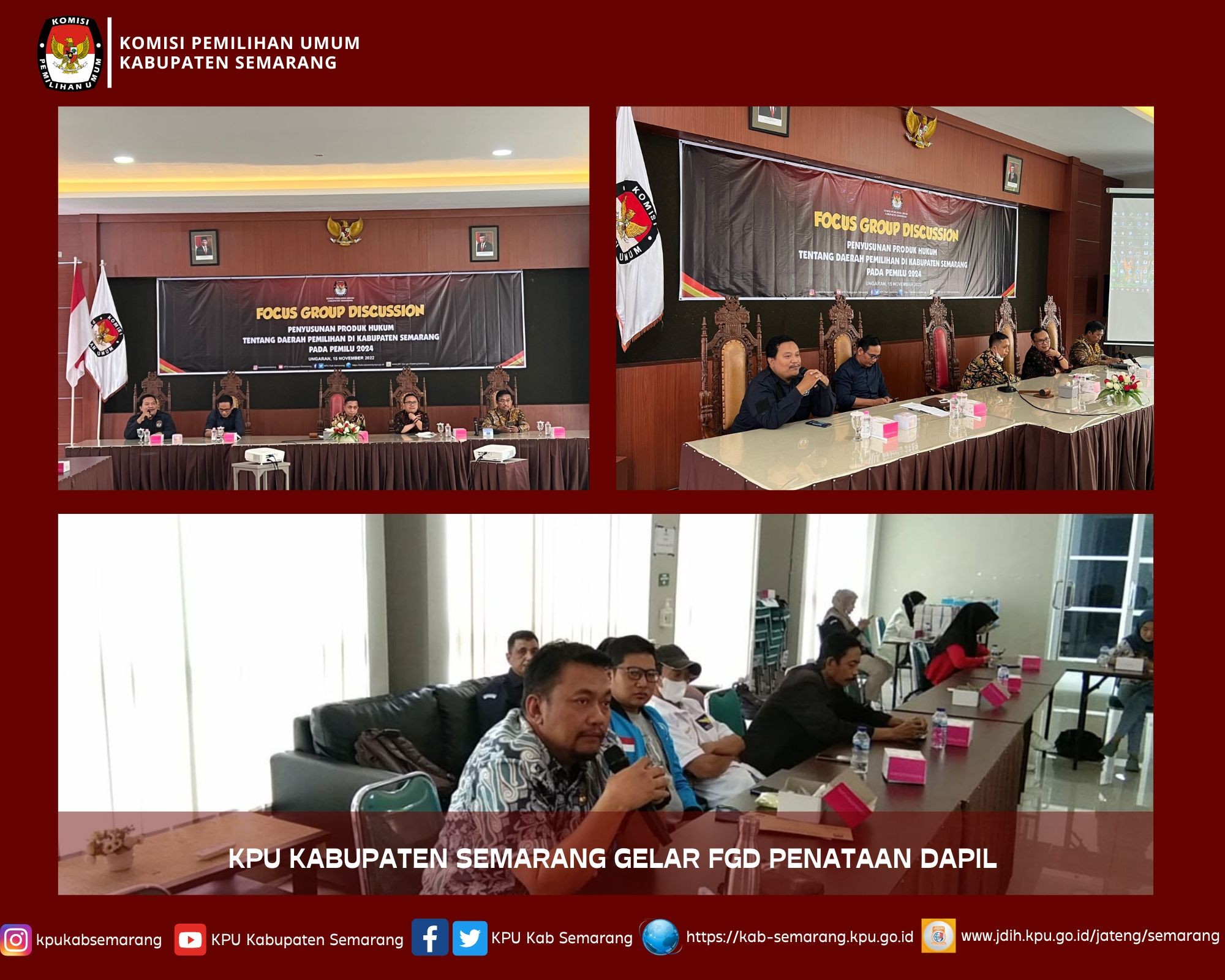 Kegiatan FGD ini sendiri merupakan kegiatan yang diselenggarakan oleh KPU Kabupaten Semarang untuk memberikan penyuluhan terkait PKPU 6 Tahun 2022 tentang Penataan Daerah Pemilihan dan Alokasi Kursi, selanjutnya menjaring masukan dan informasi dari partai politik, Pemda, dan masyarakat.