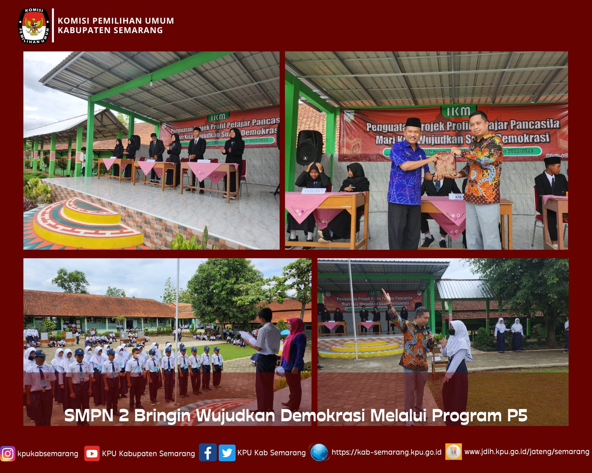 Bringin (04/10), dalam rangka mengimplementasikan Kurikulum Merdeka (IKM), SMP N 2 Bringin menyelenggarakan Pemilihan Ketua OSIS. Kegiatan yang merupakan rangkaian program Penguatan Projek Profil Pelajar Pancasila tersebut diikuti oleh kurang lebih 550 peserta yang terdiri dari siswa, guru serta Komite Sekolah. Hadir secara langsung Ketua KPU Kabupaten Semarang, Maskup Asyadi dalam kesempatan tersebut. Maskup menyampaikan bahwa kegiatan Pemilihan Ketua OSIS ini merupakan cara awal mengenal demokrasi. Melalui kegiatan tersebut diharapkan para siswa dapat mengetahui tata cara pemilihan Ketua OSIS yang dibuat semirip mungkin dengan pelaksanaan Pemilihan Umum sehingga dapat memilih pemimpin yang berkualitas, tambah Maskup. Kepala Sekolah SMP N 2 Bringin, Bambang Dwi Setyanto dalam sambutannya menyampaikan bahwa siswa diharapkan dapat belajar secara langsung proses demokrasi melalui program tersebut serta dapat memilih calon dengan program terbaik.