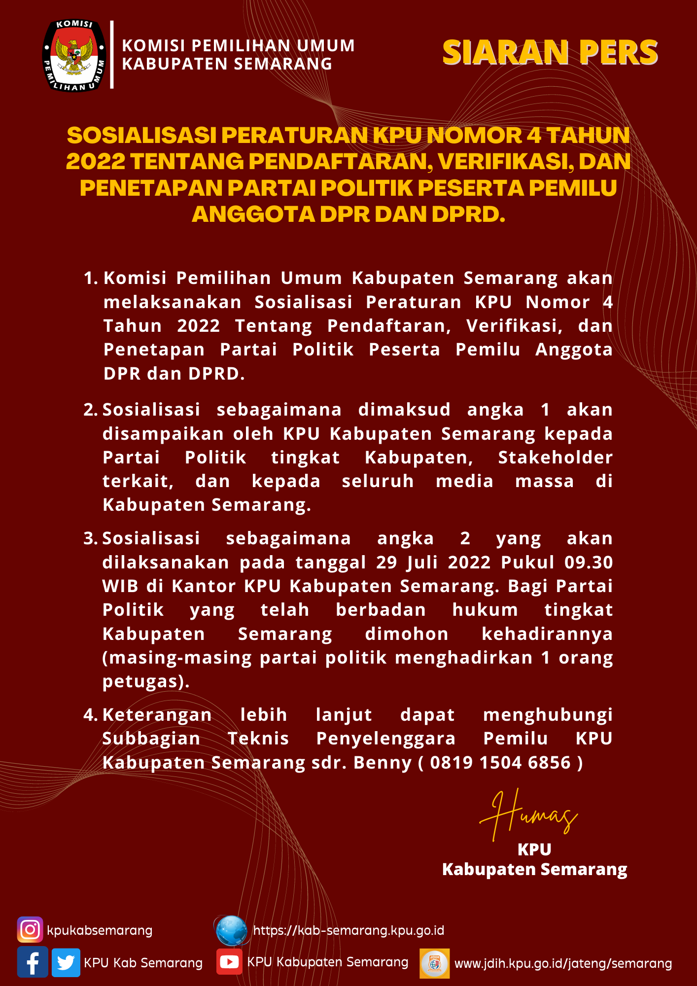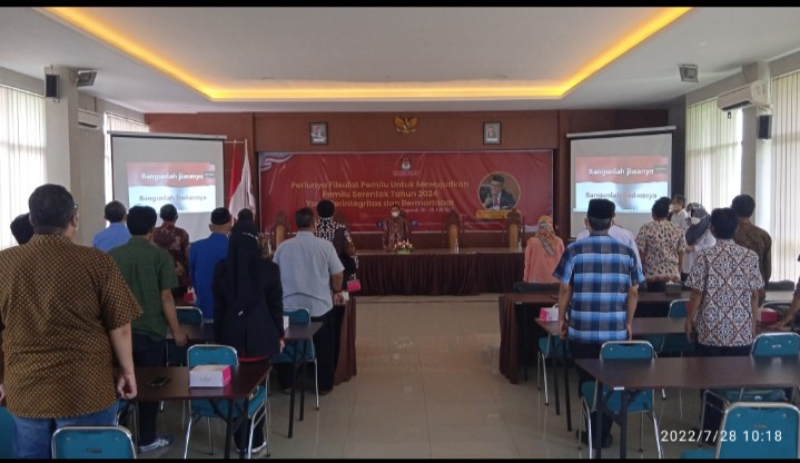 Ungaran (28/07) Bertempat di Aula Lt. 3 Jl.Ahmad Yani, No. 6 Ungaran, KPU Kabupaten Semarang menyelenggarakan Seminar bertemakan "Perlunya Filsafat Pemilu untuk Mewujudkan Pemilu Serentak Tahun 2024 yang Berintegritas dan Bermartabat." Hadir sebagai Narasumber Prof.DR.Teguh Prasetyo, SH, M.Si, Anggota DKPP Republik Indonesia. Ketua KPU Kabupaten Semarang, Maskup Asyadi dalam sambutannya menyampaikan bahwa pemilu yang akan kita laksanakan harus sesuai dengan Pancasila karena pemilu sebagai perwujudan sarana demokrasi. Selanjutnya Aris Mufid, Anggota KPU Kabupaten Semarang Divisi Teknis memberikan informasi bahwa sampai dengan hari ini ada 38 parpol yang meminta akun SIPOL dan harapannya proses verifikasi partai politik berjalan denga baik dan lancar. Narasumber menekankan pada etik bagi penyelenggara pemilu baik KPU dan Bawaslu dimana pijakan etik yakni penilaian yang diletakkan pada penyelenggara mengenai perbuatan patut dan tidak patut dilakukan. Etik ini sangat penting untuk mewujudkan Pemilu yang berintegritas dan bermartabat. Turut hadir dalam acara tersebut para tamu undangan Ketua KPU Kota Semarang, Ketua KPU Kabupaten Demak, Ketua KPU Kendal,Polres Semarang, Ketua Bawaslu Kabupaten Semarang, Kesbangpol Kabupaten Semarang, Bagian Tata Pemerintahan Kabupaten Semarang, Ketua Partai Politik se Kabupaten Semarang.