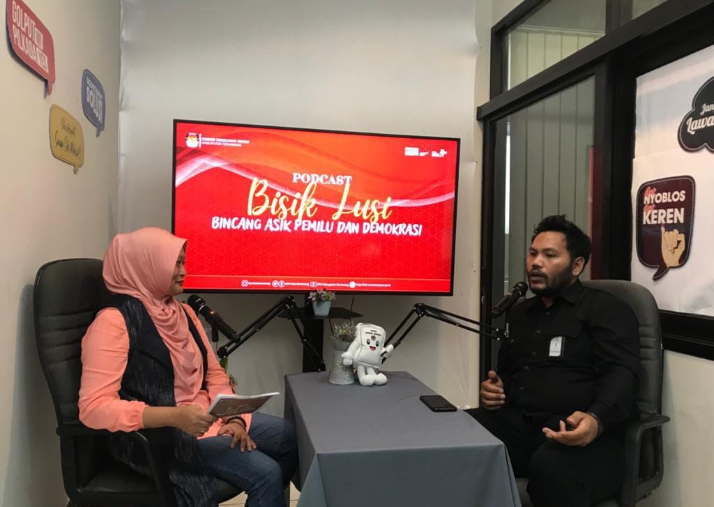 BISIK LUSI” PODCAST PERDANA KPU KABUPATEN SEMARANG Ungaran (02/06) KPU Kabupaten Semarang menyelenggarakan podcast perdana “Bisik Lusi” Bincang Asyik Pemilu dan Demokrasi dengan tema “Pemanfaatan Media Digital dalam Pemilu/ Pemilihan” di ruang Subag Teknis lantai 2, kantor KPU Kabupaten Semarang pada pukul 14.00 WIB. Acara tersebut dilaksanakan dengan melibatkan mahasiswa dari Universitas Kristen Satya Wacana (UKSW) Salatiga dan dipandu oleh Anggota KPU Kabupaten Semarang Divisi Sosialisasi, Pendidikan Pemilih, Partisipasi Masyarakat, dan SDM, Siti Solichah. Hadir narasumber Ketua KPU Kota Semarang,Henry Casandra Gultom yang biasa akrab dipanggil "Nanda" menekankan perlunya edukasi dalam penggunaan media digital. Selain itu disampaikan juga bahwa media digital pada jaman ini adalah sebuah keniscayaan dan dapat digunakan dalam setiap tahapan Pemilu/ Pemilihan untuk efektifitas dan efisiensi pelaksanaan Pemilu/ Pemilihan. Selanjutnya Nanda menjelaskan bahwa media digital merupakan sesuatu yang mempunyai hubungan dengan internet dan teknologi informasi. KPU Kota Semarang memanfaatkan media digital tersebut dengan menyelenggarakan lomba secara virtual seperti Lomba Vlog, Lomba Selfi, Virtual Bike dan Konser Virtual. Harapannya, media digital digunakan dan dimanfaatkan oleh KPU RI di setiap tahapan Pemilu dan Pemilihan tahun 2024.