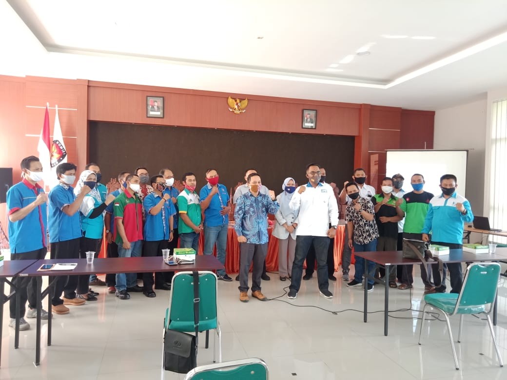 Ungaran (24/8), KPU Kabupaten Semarang menyelenggerakan kegiatan Rapat Koordinasi Pemeriksaan Kesehatan Pasangan Calon pada Pemilihan Kepala Daerah dan Wakil Kepala Daerah Tahun 2020. Kegiatan tersebut dilaksanakan di Aula Lantai 3 Kantor KPU Kabupaten Semarang. Kegiatan tersebut dilaksanakan dengan memperhatikan protokol kesehatan. Dalam sambutannya. Ketua KPU Kabupaten Semarang, Maskup Asyadi menyampaikan pemeriksaan kesehatan merupakan bagian dari proses pendaftaran pencalonan. Kegiatan pemeriksaan kegiatan dilakukan pada tanggal 4-11 September 2020. Selain itu, Ketua KPU Kabupaten Semarang menyampaikan rapat koordinasi ini diharapkan menghasilkan yang lebih baik untuk tahapan pemeriksaan kesehatan. Selanjutnya, sambutan Ketua KPU Provinsi yang diwakilkan oleh Dra. Putnawati, M.Si Anggota KPU Provinsi Jawa Tengah Divisi Teknis. Beliau menyampaikan bahwasanya kegiatan rapat koordinasi yang difasilitasi oleh KPU Kabupaten Semarang adalah terkait pemeriksaan kesehatan zona RS. Karyadi. Disampaikan juga, tentang pemeriksaan kesehatan yang akan menjadi persyaratan bakal pasangan calon kepala daerah yang meliputi tes kesehatan, tes psikologi, dan tes bebas narkoba. Dalam hal ini diharapkan Pilkada berjalan sukses, sukses dalam anggaran, sukses proses, sukses hasil, dan sukses dalam pembuatan laporan pertanggungjawaban. Acara selanjutnya Diskusi tentang RAB (Rencana Anggaran Biaya) Pemeriksaan Kesehatan. Diskusi dibuka oleh R. Suryanto, M.Kom Kabag KUL (Keuangan Umum dan Logistik) KPU Provinsi Jawa Tengah menyampaikan pemeriksaan kesehatan, pemeriksaan psikologi, dan pemeriksaan narkoba berkaitan dengan anggaran di KPU. Turut hadir dalam kegiatan tersebut yaitu Ketua, Sekretaris, dan Anggota Divisi Teknis KPU Kabupaten Rembang, Demak, Pemalang, Kendal, Pekalongan, dan KPU Kota Semarang dan Kota Pekalongan. Juga menghadiri, perwakilan Dokter RSUP Dr. Kariadi, Ketua HIMPSI Jawa Tengah, dan Ketua BNN Provinsi Jawa Tengah.