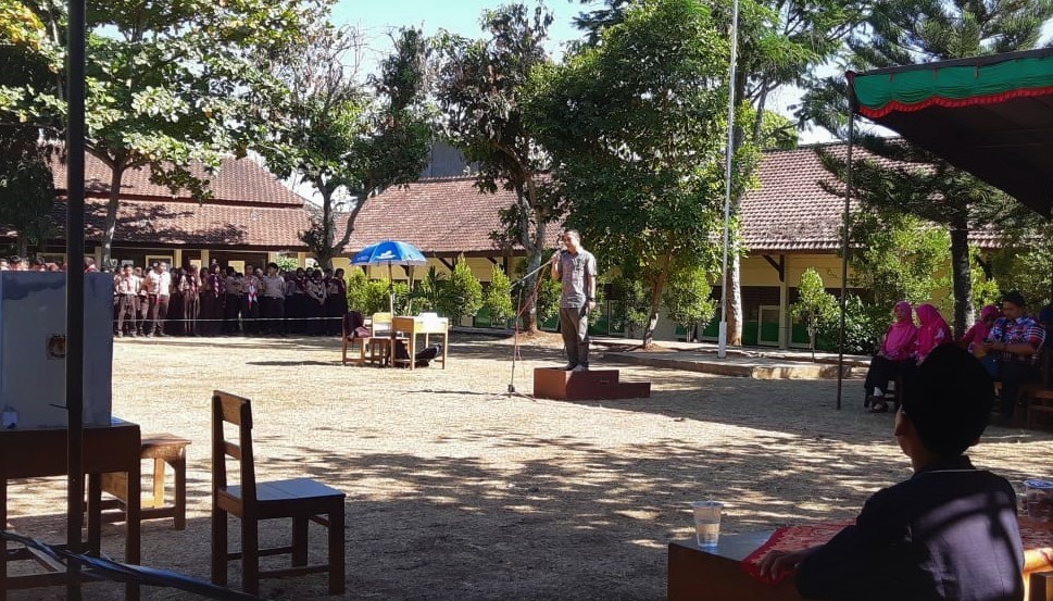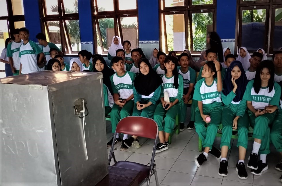 Pabelan (2/9), KPU Kabupaten Semarang terus berupaya memberikan pendidikan demokrasi dan pemilu bagi generasi muda. Kali ini adalah siswa-siswi SMP Negeri 1 Pabelan Kabupaten Semarang yang mendapatkan kesempatan dan pengalaman tersebut melalui program Kelas Pemilu. Kelas Pemilu merupakan program sosialisasi dan pendidikan pemilih yang digalakkan oleh KPU Kabupaten Semarang dengan menargetkan para pemilih pemula maupun para calon pemilih (prapemilih) sebagai basis utama. Hal ini dimaksudkan untuk menyiapkan generasi milenial sebagai penerus bangsa agar lebih matang dan siap untuk aktif berpartisipasi dalam setiap penyelenggaraan pemilu Kepala Sekolah SMP Negeri 1 Pabelan, Nurzaka Sri Wandansari, saat membuka acara berharap melalui penyelenggaraan Kelas Pemilu ini dapat memberi manfaat dan dampak yang positif bagi anak didiknya sebelum aktif menjalani kehidupan berdemokrasi. Selain itu dirinya mengapresiasi kerjasama dan fasilitasi yang diberikan oleh KPU Kabupaten Semarang dalam penyelenggaraan Kelas Pemilu dan juga Pemilos serta berkomitmen untuk terus meningkatkan kerjasama semacam ini ke depan sehingga menjadi program yang berkelanjutan. Sementara itu, Anggota KPU Kabupaten Semarang Divisi Perencanaan, Data dan Informasi, Bambang Setyono yang menjadi pembicara dalam Kelas Pemilu berharap agar siswa-siswi yang mengikuti kegiatan tersebut nantinya dapat menjadi generasi penerus bangsa yang bermartabat. Salah satu cerminannya adalah dengan menjadi pemilih yang cerdas, aktif dan tidak pragmatis. Selain Kelas Pemilu, siswa-siswi SMP Negeri 1 Pabelan juga belajar demokrasi secara langsung melalui penyelenggaraan Pemilihan Ketua dan Wakil Ketua OSIS (Pemilos) Periode 2019-2020. Sedangkan materi yang disampaikan dalam Kelas Pemilu antara lain adalah pengenalan sistem demokrasi, sejarah pemilu dan menjadi pemilih yang cerdas dan tidak pragmatis.