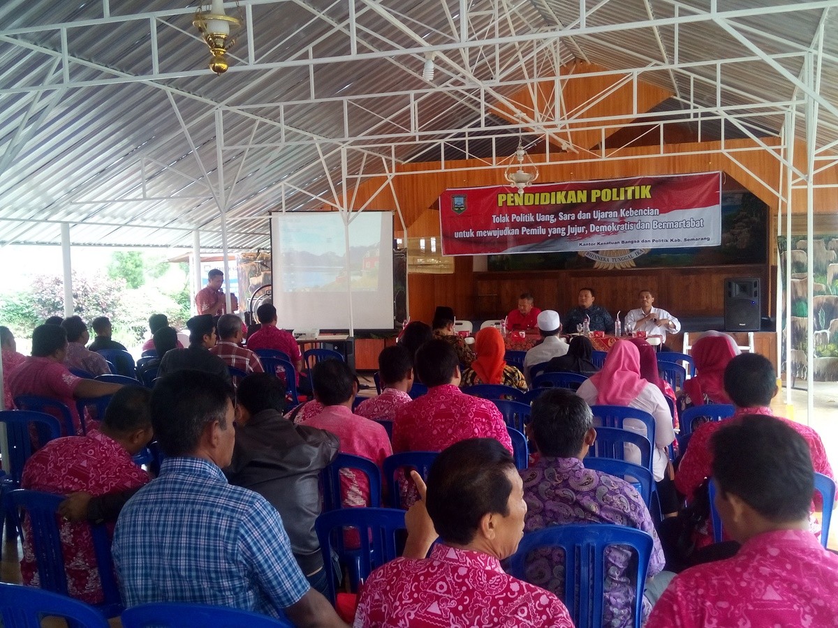 Ungaran (9/2), KPU Kabupaten Semarang menyelenggarakan Bimbingan Teknis (Bimtek) Pemantapan Program Kerja Relawan Demokrasi Pemilihan Umum 2019 di Ruang Aula Lantai 3 Kantor KPU Kabupaten Semarang. Pemateri dalam bimtek kedua bagi Relawan Demokrasi ini menghadirkan pakar sekaligus praktisi di bidang penyelenggaraan pemilu, Dr. Nur Hidayat Sardini, S.Sos., M.Si dan Anggota KPU Provinsi Jawa Tengah Divisi Hukum dan Pengawasan, Muslim Aisha, S.H.I. Anggota KPU Provinsi Jawa Tengah Divisi Hukum dan Pengawasn, Muslim Aisha, S.H.I saat Menyampaikan Materi dalam Bimtek Pembekalan Relawan Demokrasi Pemilu 2019 Ketua KPU Kabupaten Semarang, Maskup Asyadi, S.Kel., MH dalam sambutannya menyampaikan bahwa dalam Bimtek kali ini KPU Kabupaten Semarang sengaja mendatangkan narasumber yang kompeten di bidangnya agar Relawan Demokrasi (Relasi) sebagai agen sosialisasi dan pendidikan pemilih di Kabupaten Semarang dapat memiliki gambaran yang jelas dan mendetail mengenai program kerja yang akan disusun selanjutnya. Sehingga nantinya dapat direalisasikan sebaik-baiknya dan target 77,5 persen tingkat partisipasi pemilih dapat tercapai dan bahkan melebihi target. “Hari ini akan bertemu dengan dua narasumber yang merupakan Pakar Pemilu. Tentu ilmunya sangat banyak sekali. Akan baik sekali untuk teman-teman menimba ilmu” tambahnya. Pada bimtek tersebut, NHS, demikian mantan Ketua Bawaslu Periode 2008-2011 dan Anggota DKPP 2012-2017 tersebut biasa disapa, menyampaikan materi diantaranya terkait gambaran umum mengenai Pemilu Serentak 2019, relevansi Relawan Demokrasi serta Kode Etik Relawan Demokrasi. “Jauhnya jangkauan dari KPU kepada kelompok sasaran, keinginan meningkatkan partisipasi Pemilu (2019) serta upaya memberi perhatian kepada segmen pemilih yang riil, yang diidentifikasi menjadi 11 elemen pemilih menjadi dasar bagi pentingnya keberadaan relawan Demokrasi” sambungnya. Selain ketiga materi terkait tugas Relasi tersebut, akademisi Universitas Diponegoro ini juga membagikan tips untuk berbicara di depan khalayak (public speaking) sebagai bekal para relawan dalam menghadapi masyarakat pemilih. Relawan Demokrasi Berfoto Bersama Seusai Pemaparan Materi oleh Anggota KPU Provinsi Jawa Tengah Divisi Hukum dan Pengawasan, Muslim Aisha, S.H.I Sementara itu, Anggota KPU Provinsi Jawa Tengah, Muslim Aisha, S.H.I menekankan bahwa pembagian tugas Relasi sesuai basis yang dipilih merupakan target sasaran minimal, tetapi sebagai agen sosialisasi perlu menyampaikan informasi terkait Pemilu 2019 secara umum kepada siapa pun yang ditemui. “Seperti hanya sales (marketing) mobil, kepada siapa saja yang diomongkan adalah seputar mobil. Menawarkan mobil. Begitu pula Relasi sebagai agen, ketemu siapa saja disampaikan informasi pemilu” pungkasnya. Selain kedua narasumber utama tersebut, Bimtek yang dihadiri oleh 46 orang Relawan ini juga diisi penyampaikan materi teknis oleh internal KPU Kabupaten Semarang.
