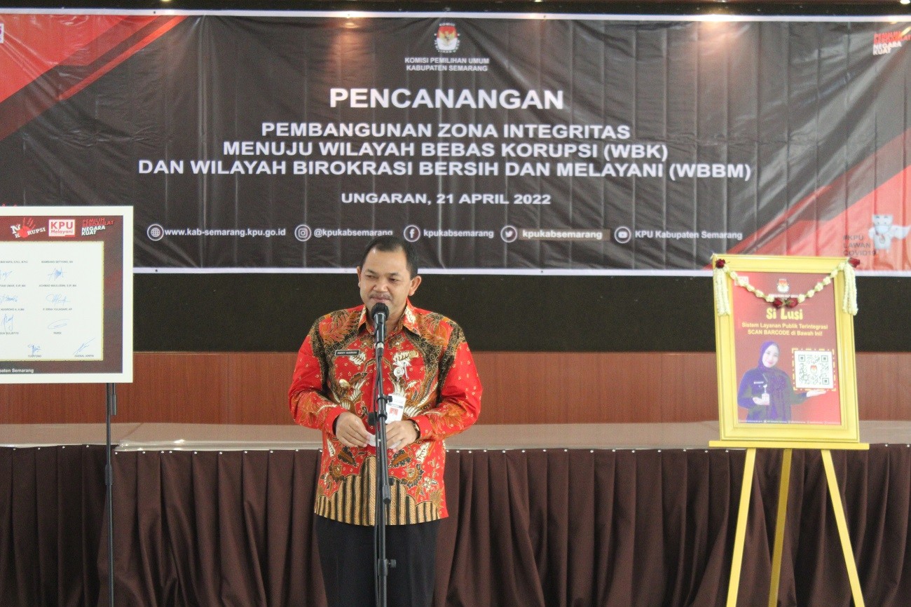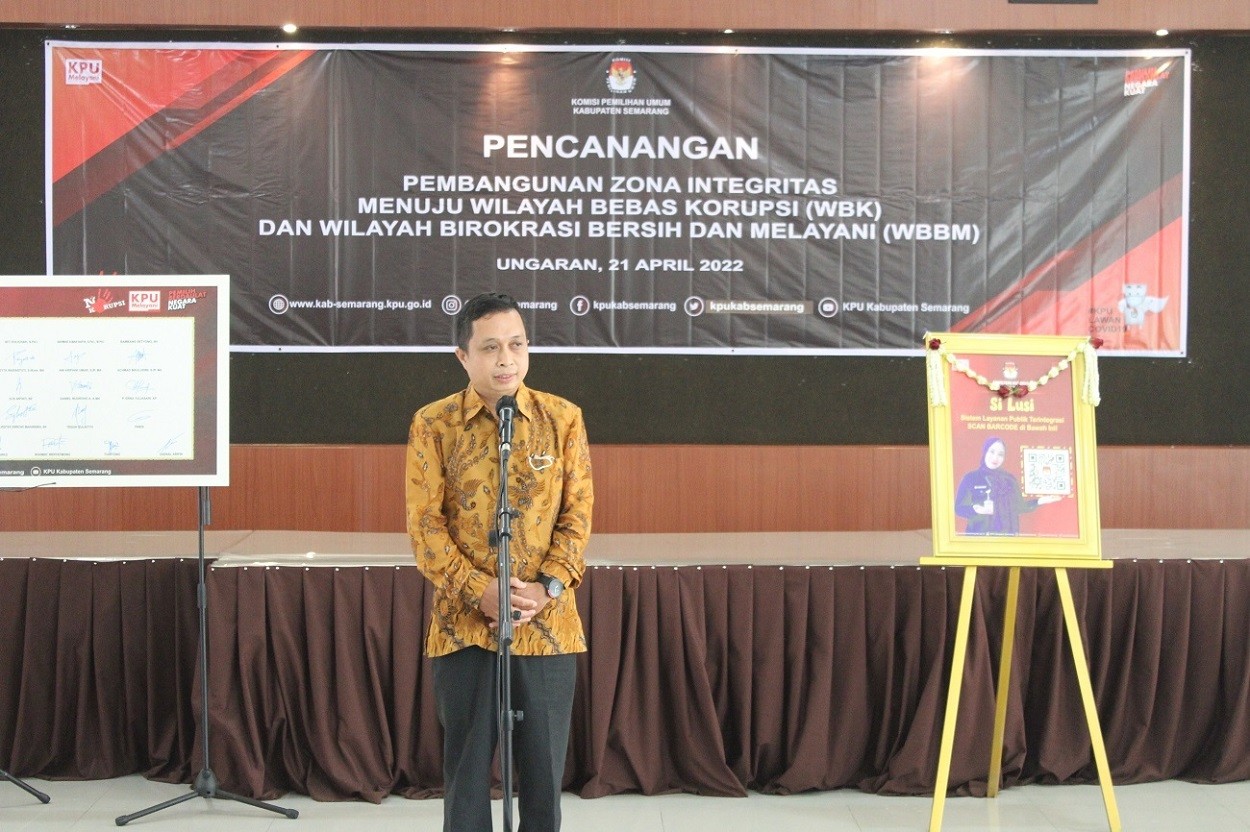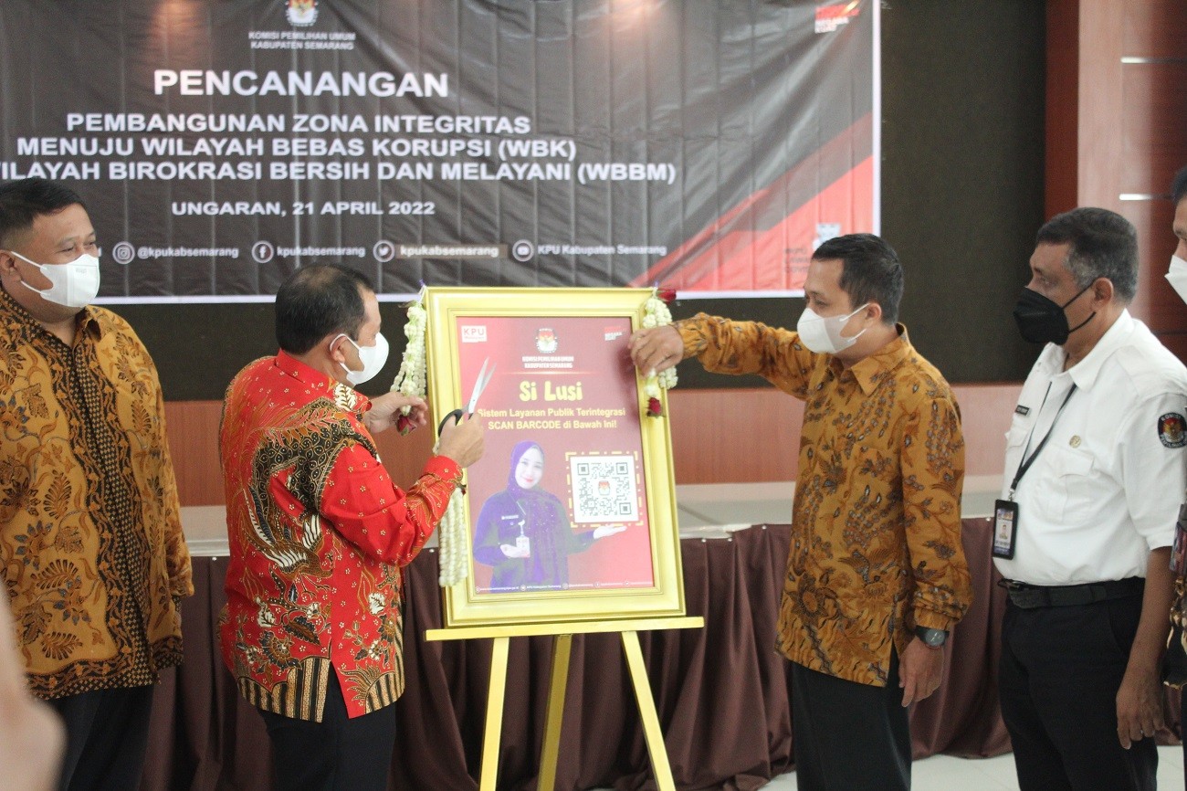 Pencanangan Pembangunan Zona Integritas di Wilayah KPU Kabupaten Semarang dilaksanakan bertepatan dengan perayaan Hari Kartini, yakni pada Kamis, 21 April 2022. Pada kegiatan tersebut dilakukan penandatangan komitmen bersama seluruh jajaran komisioenr maupun kesekretariatan guna mewujudkan KPU Kabupaten Semarang sebagai WBK dan WBBM. Selain itu, Bupati Semarang, H. Ngesti Widodo, S.H., MH yang hadir secara pribadi turut menyaksikan penandatangan komitmen bersama dimaksud sekaligus berkesempatan meluncurkan Sistem Pelayanan Publik Terintegrasi (Si Lusi) di KPU Kabupaten Semarang.